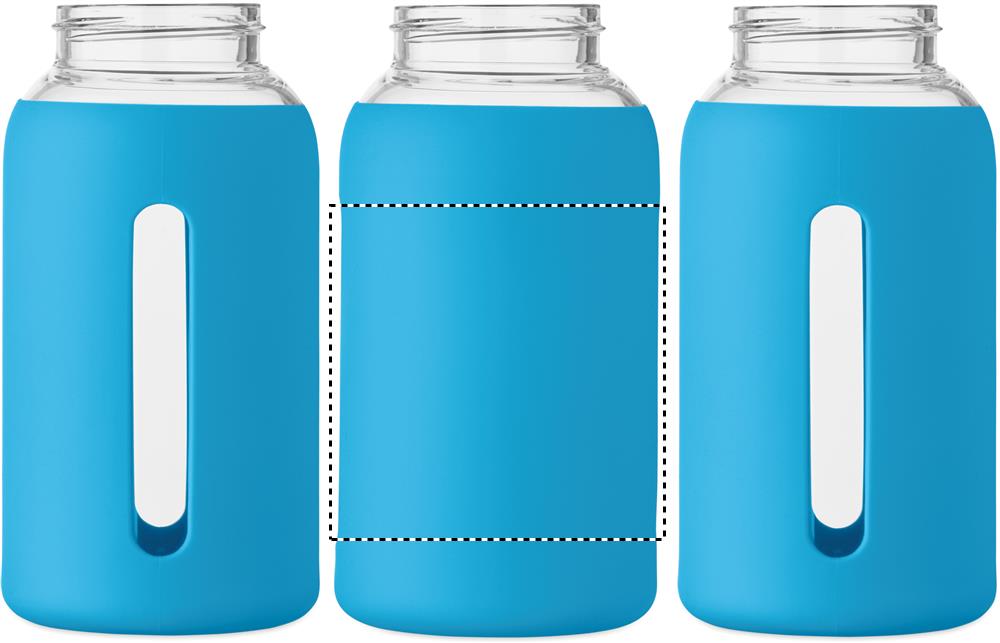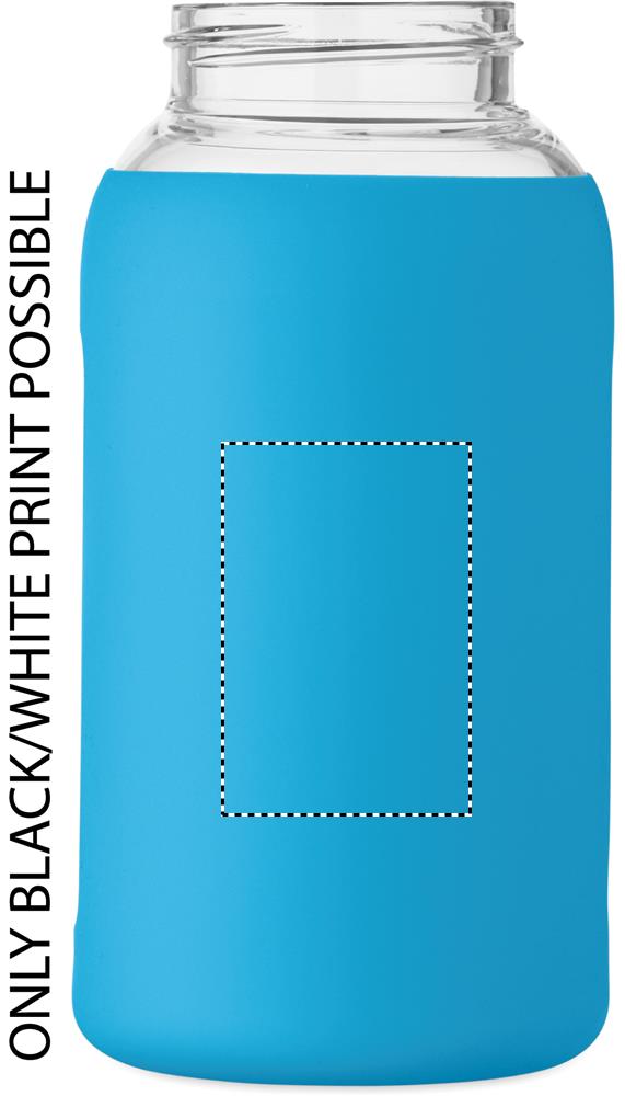 Fles van hoog borosilicaatglas met siliconen hoes en PP deksel met handvat. Inhoud: 600ml
