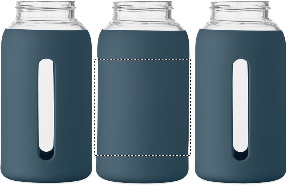 Fles van hoog borosilicaatglas met siliconen hoes en PP deksel met handvat. Inhoud: 600ml