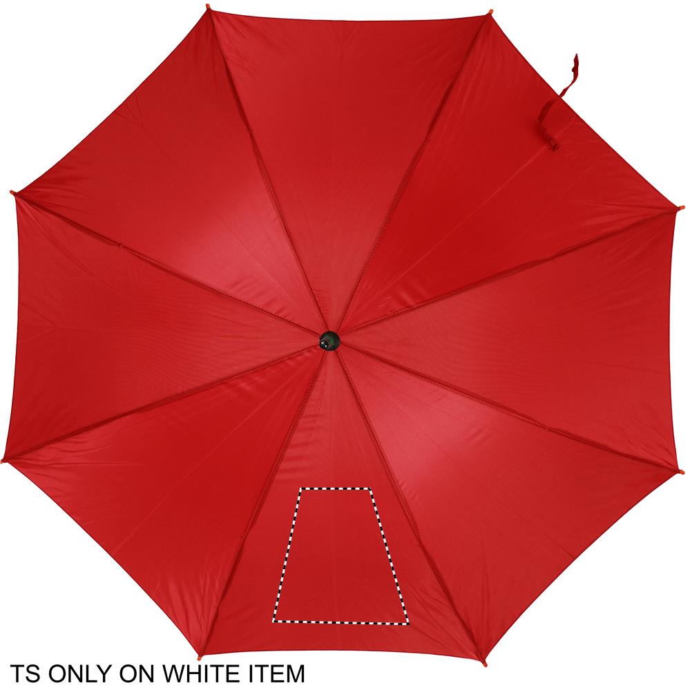Paraplu, 23 inch. 190T polyester met houten steel, uiteinden en top. Zwart metalen baleinen. Houten handvat, natuurlijke uitstraling. Opent automatisch.