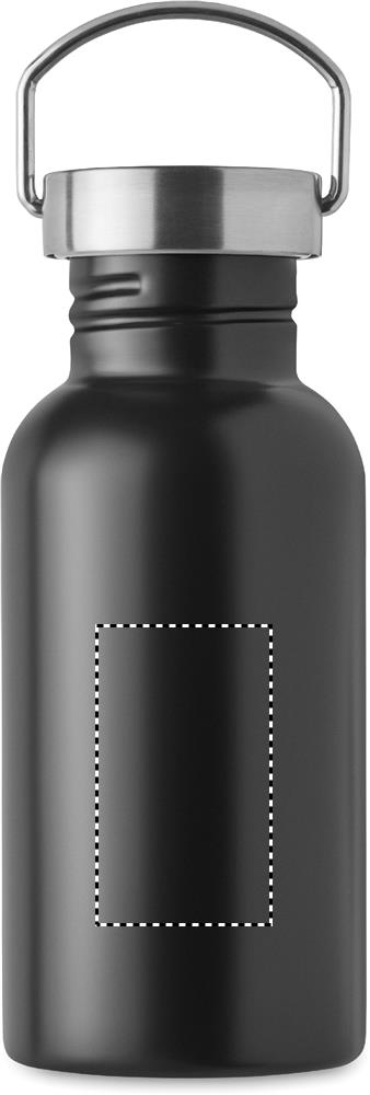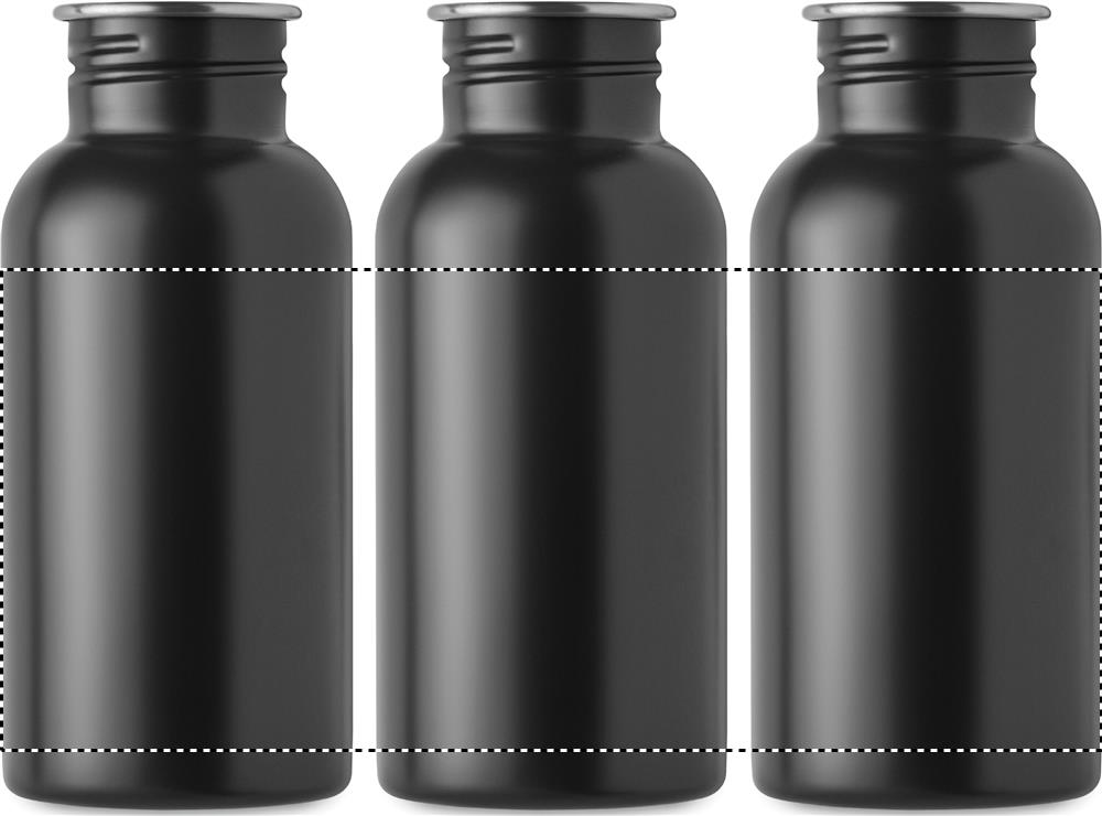 Enkelwandige fles van gerecycled roestvrij staal (90% gerecycled roestvrij staal en 10% roestvrij staal) met deksel en handvat. Lekvrij. Inhoud: 500ml. Aangezien dit een enkelwandige fles is, kan er nog steeds warmteoverdracht plaatsvinden.