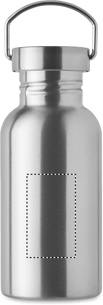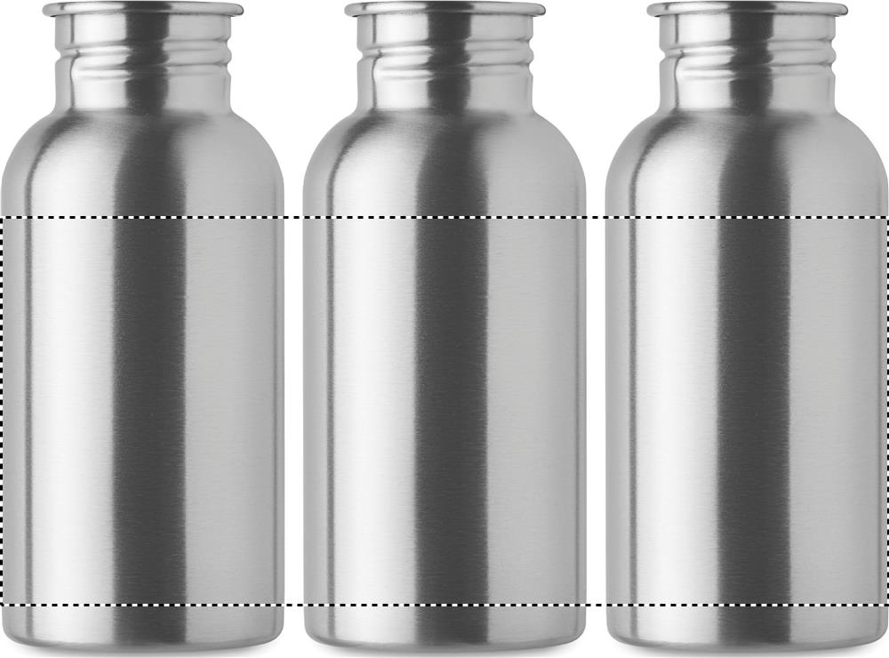 Enkelwandige fles van gerecycled roestvrij staal (90% gerecycled roestvrij staal en 10% roestvrij staal) met deksel en handvat. Lekvrij. Inhoud: 500ml. Aangezien dit een enkelwandige fles is, kan er nog steeds warmteoverdracht plaatsvinden.