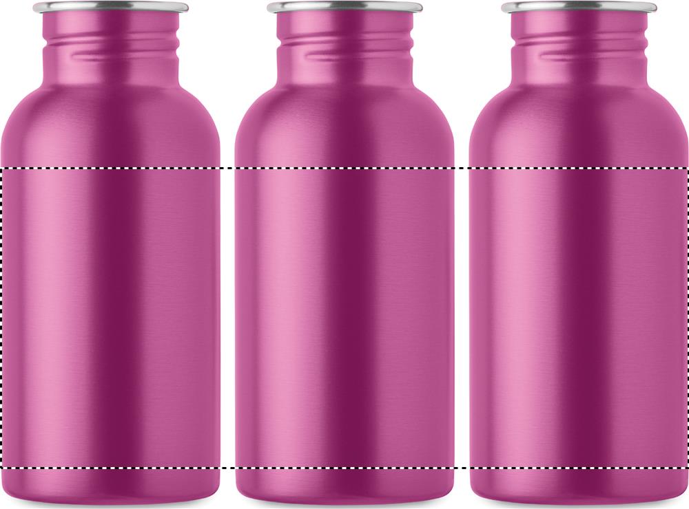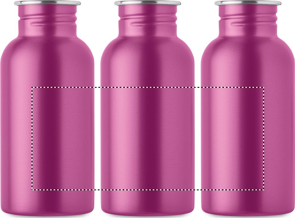 Enkelwandige fles van gerecycled roestvrij staal (90% gerecycled roestvrij staal en 10% roestvrij staal) met deksel en handvat. Lekvrij. Inhoud: 500ml. Aangezien dit een enkelwandige fles is, kan er nog steeds warmteoverdracht plaatsvinden.