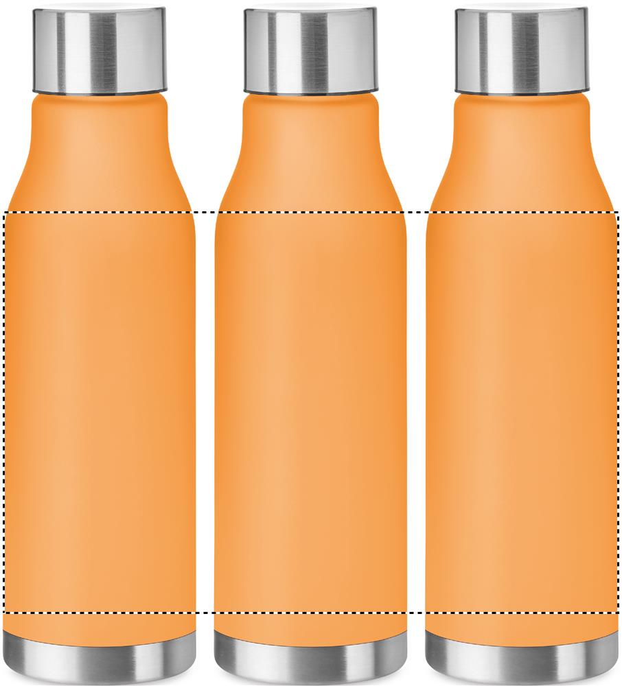 Lekvrije RPET drinkfles met rubber finish en roestvrijstalen dop met RPET binnenwerk en siliconen ring. Inhoud 600ML. Niet geschikt voor koolzuurhoudende drankenLekvrij.