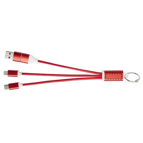 Metal 4-in-1 oplaadkabel van gerecycled aluminium met sleutelhanger