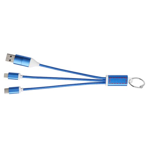 Metal 4-in-1 oplaadkabel van gerecycled aluminium met sleutelhanger