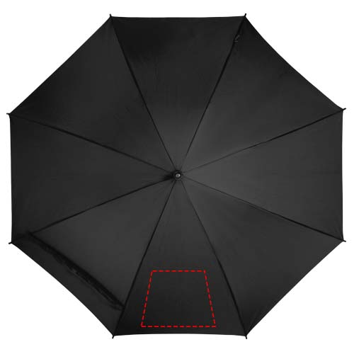 23” automatisch openende paraplu met een scherm van gerecycled PET pongé polyester. Voorzien van een stevige metalen schacht, een frame van glasvezel en een comfortabele EVA-handgreep met een bijpassende kleur. Groot afdrukgebied op elk van de panelen.