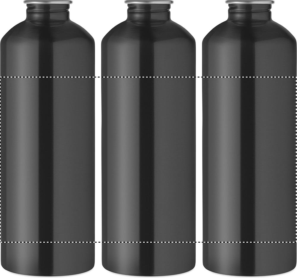 Enkelwandige fles (90% gerecycled roestvrij staal en 10% roestvrij staal) met een PP dop en karabijnhaak. Inhoud 1000ml. Omdat dit een enkelwandige fles is, kan er nog warmteoverdracht plaatsvinden.