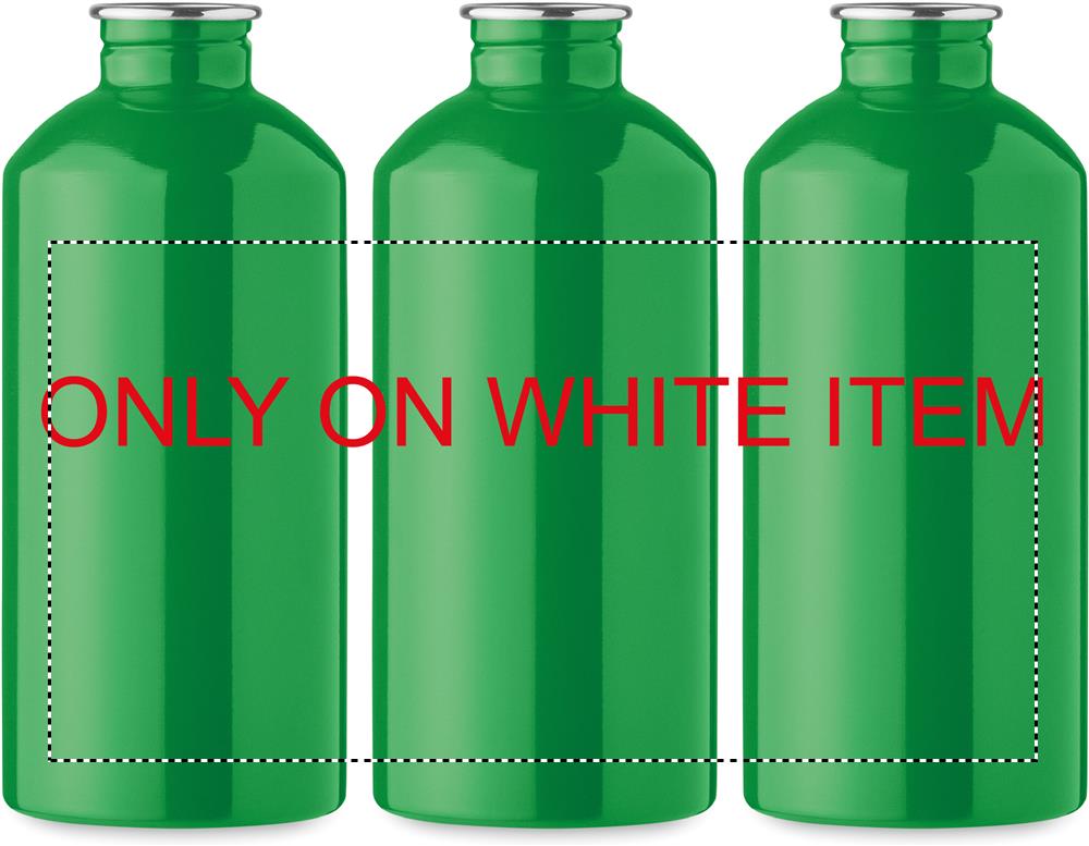 Enkellaagse fles van gerecycled roestvrij staal (90% gerecycled roestvrij staal en 10% roestvrij staal) met karabijnhaak. De karabijnhaak is niet geschikt voor klimmen (niet professioneel gebruik). 500 ml. Sublimatieprint alleen beschikbaar op wit artikel. Lekvrij.