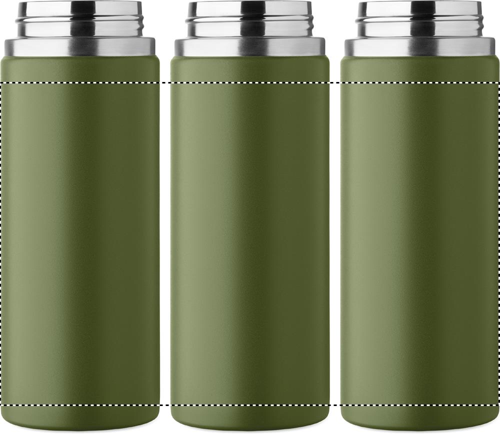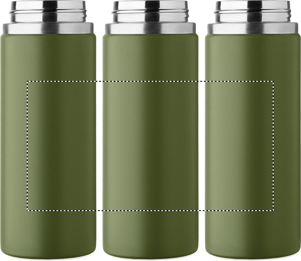 Dubbelwandige geïsoleerde fles van gerecycled roestvrij staal (90% gerecycled roestvrij en 10% roestvrij staal) met gecombineerd rietje en drinkdeksel met handvat. Lekvrij. Inhoud: 500ml.