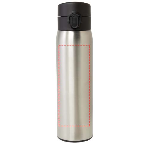 Stijlvolle, RCS-gecertificeerde, geïsoleerde fles van gerecycled roestvrij staal met een eenvoudig openingsmechanisme met knop. De fles is lekvrij en dankzij de koperen vacuümisolatie worden dranken enkele uren warm of koud gehouden. Inhoud 450 ml Gepresenteerd in een gerecyclede kartonnen geschenkverpakking.