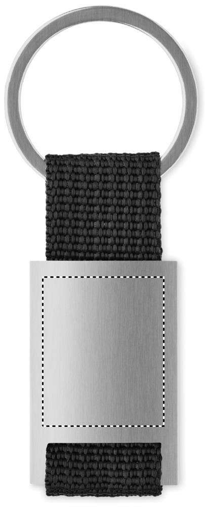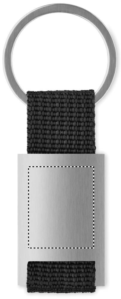 Metalen rechthoekige sleutelhanger met polyester band.