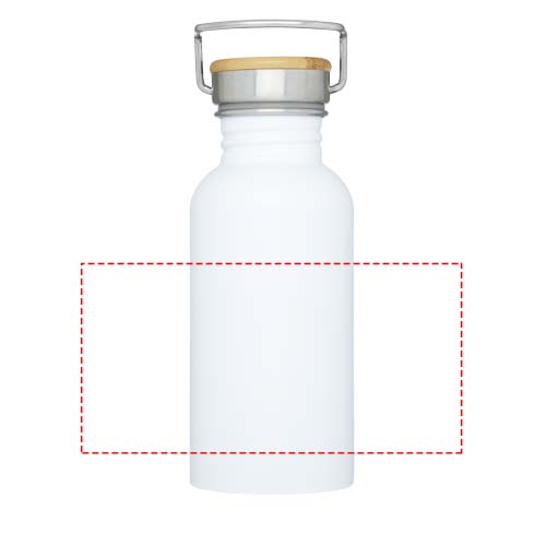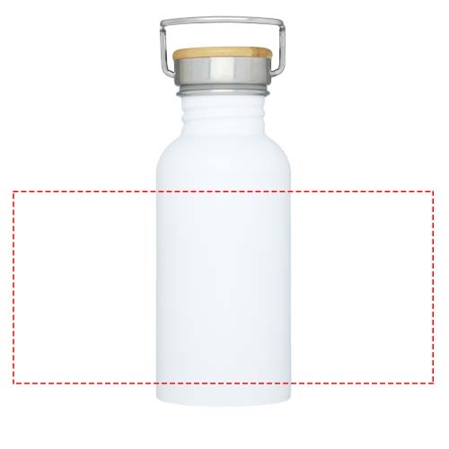 Enkelwandige drinkfles van roestvrijstaal met schroefdop. Het deksel is voorzien van een bamboetop, evenals een hengsel voor gemakkelijk dragen. Volumecapaciteit is 550 ml. Geleverd in een geschenkverpakking.