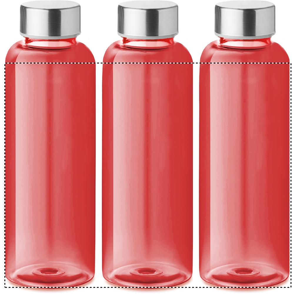 Lekvrije drinkfles van RPET, BPA-vrije. Inhoud: 500 ml. Met dop van roestvrijstaal. Niet geschikt voor koolzuurhoudende dranken. Lekvrij.