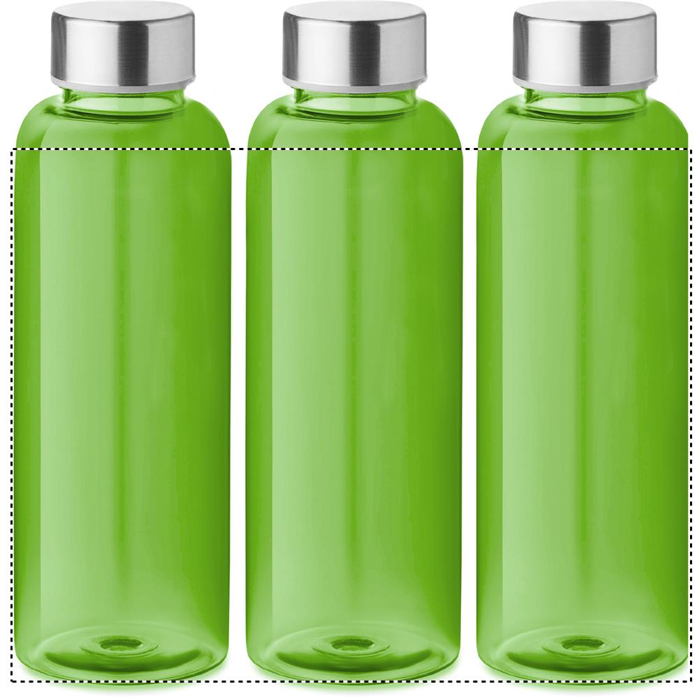 Lekvrije drinkfles van RPET, BPA-vrije. Inhoud: 500 ml. Met dop van roestvrijstaal. Niet geschikt voor koolzuurhoudende dranken. Lekvrij.